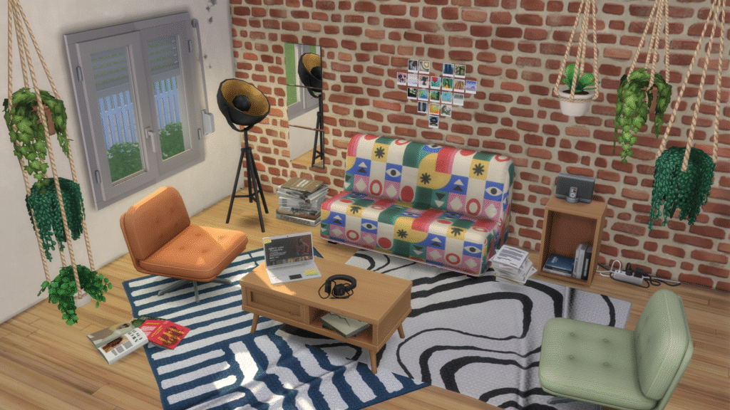 Crea un living lleno de vida con los objetos y muebles que trae este pack de CC para Los Sims 4. El set incluye sillones, una mesa ratonera, un portatil que funciona como una TV y varios elementos decorativos como plantas, revistas, pilas de libros, alfombras, enchufes, espejos y hasta un nuevo set de ventanas con cortinas enrollables.