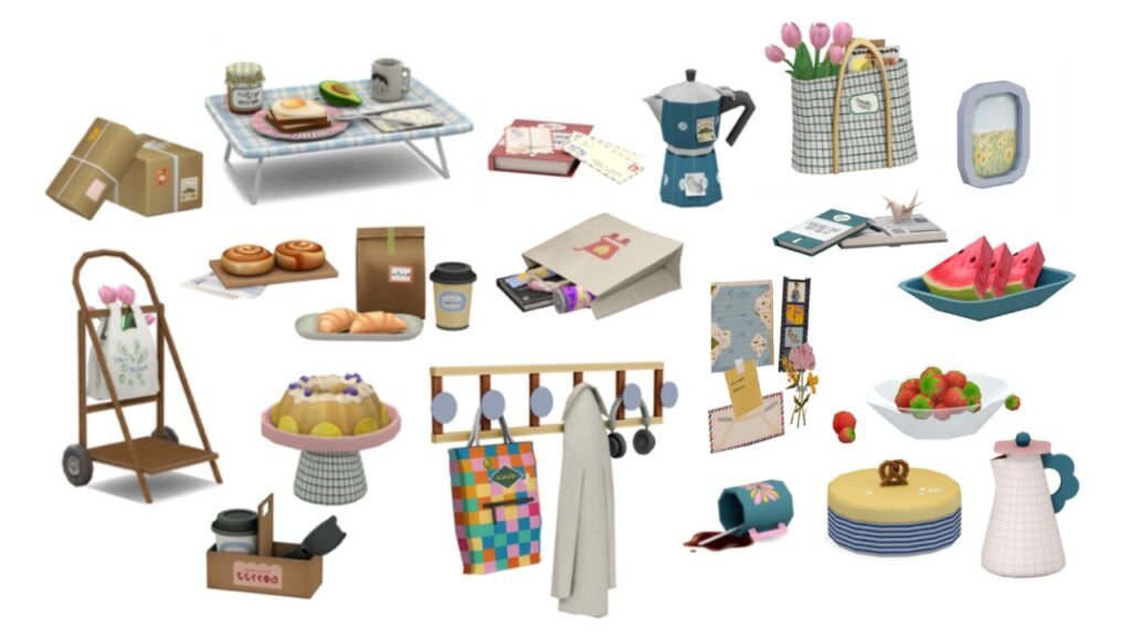Decora tus cocinas y dales vida con la gran cantidad de clutter que trae este pack de CC para Los Sims 4. El set incluye objetos de todo tipo, desde percheros y cafeteras, hasta productos de pasteleria y frutas, pasando por libros, cajas, bolsas de supermercado y hasta una taza de café derramada.